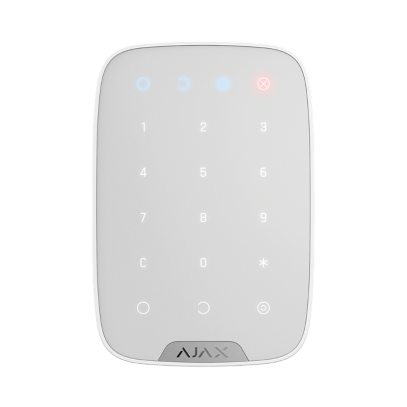 Wireless touch keypad is used for arming/disarming of the Ajax security system. The device operates security modes when a digital code is entered on the keypad. Indication notifies of current security status, problems with detectors or breakdown of communication with the hub. If an intruder tries to enter the code, a hidden alarm signal can be sent to the Central Monitoring Station. The keypad is blocked automatically if the incorrect code is entered too many times. It can also be used with contactless access devices, such as cards or tags.
