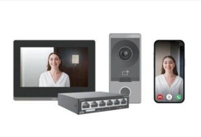 The Uniview video intercom kit comprises of the indoor monitor (OEI-372S-H-W), outdoor station (OEU-201S-HMK-W) and a 4 port POE switch (NSW2020-6T-POE-IN). The kit supports calls with the indoor monitor and to the app and also supports remotely opening doors/gates. The outdoor station features an IC card reader which supports 13.56MHz credentials. The outdoor station features a 2MP camera and infrared.