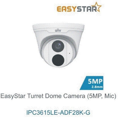 Part of the UNV EasyStar range, this Uniview turret IP camera boasting an impressive 5 megapixel HD recording resolution and a 2.8mm fixed-focal lens. Supporting up to Ultra265 compression and 30m of IR range; this camera also features a built-in microphone and MicroSD card slot.